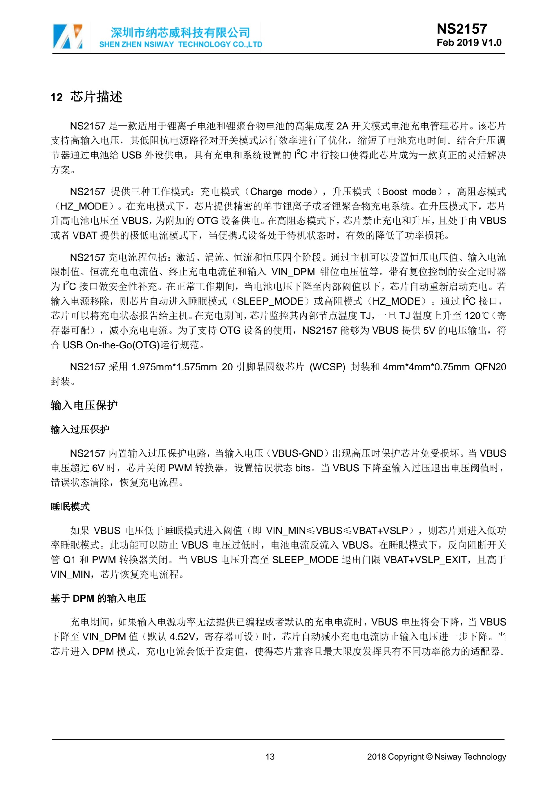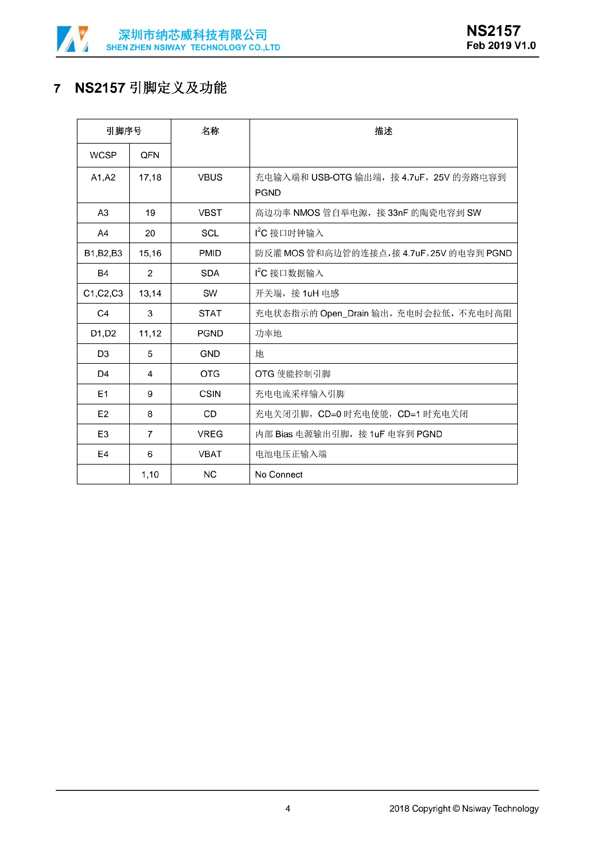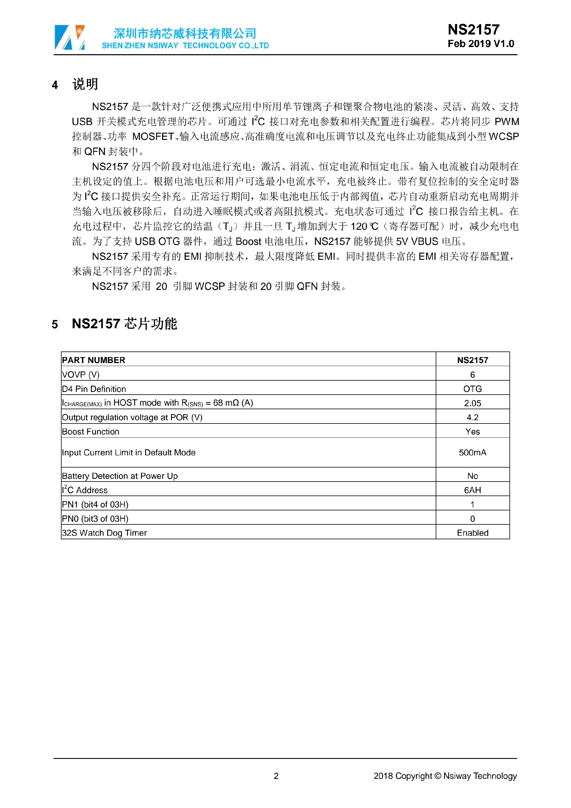NS2157 I2C控制單節2A快速充電器,支持USB On-The-Go升壓模式