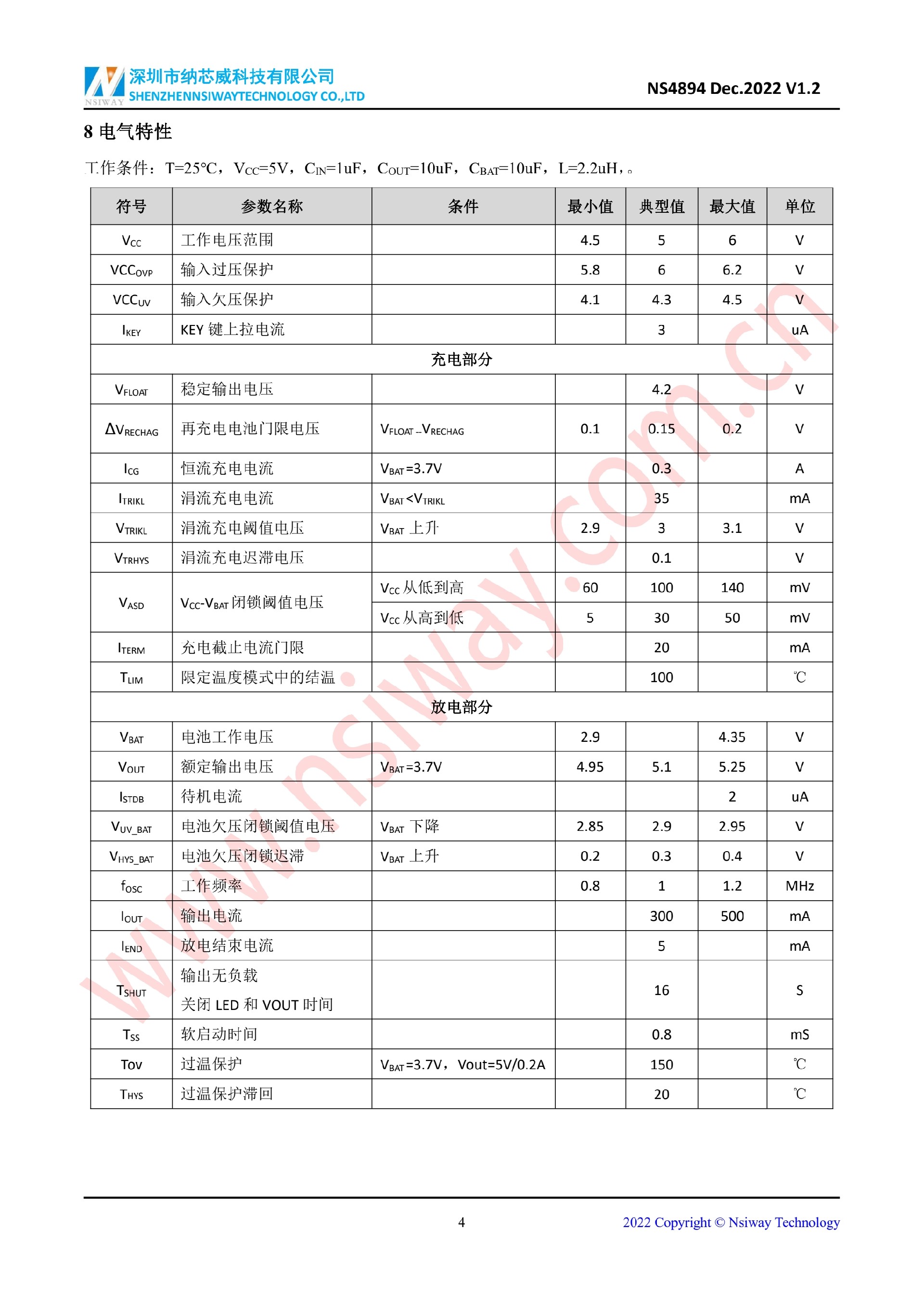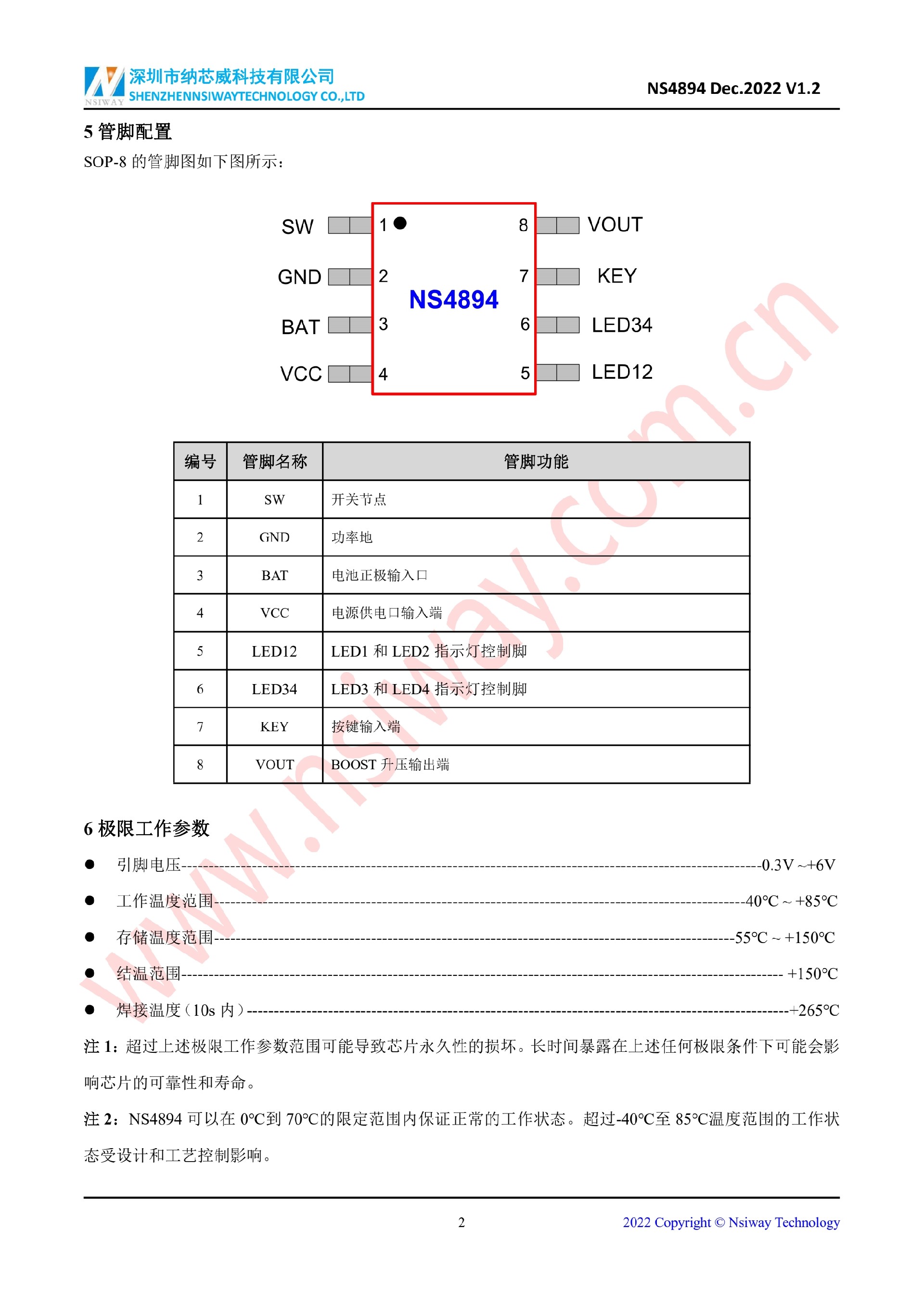 NS4894 4 LED 指示燈藍牙耳機充電倉-線性鋰電池充放電管理 IC
