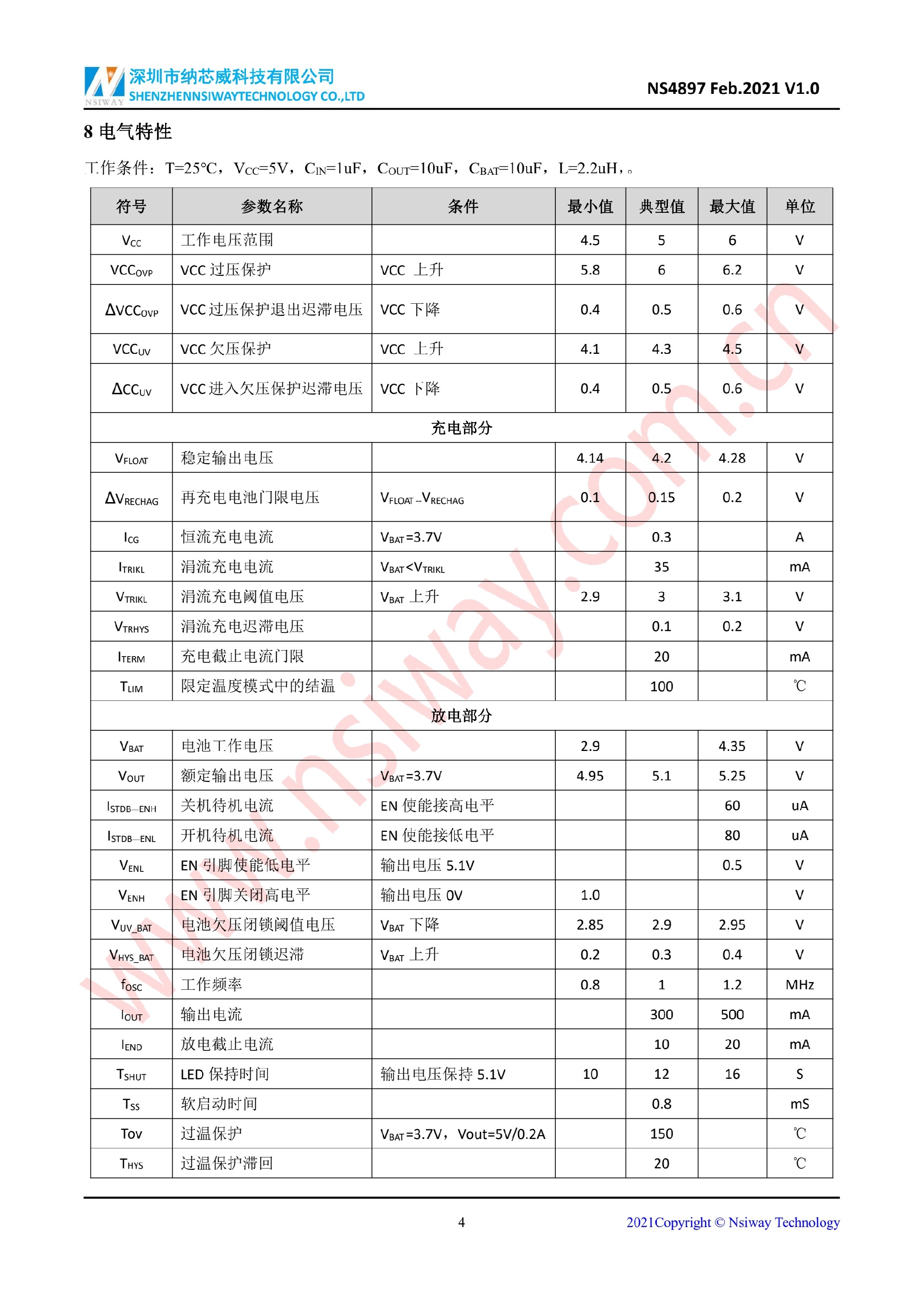 NS4897 帶使能功能 5V 常開線性鋰電池充放電管理 IC