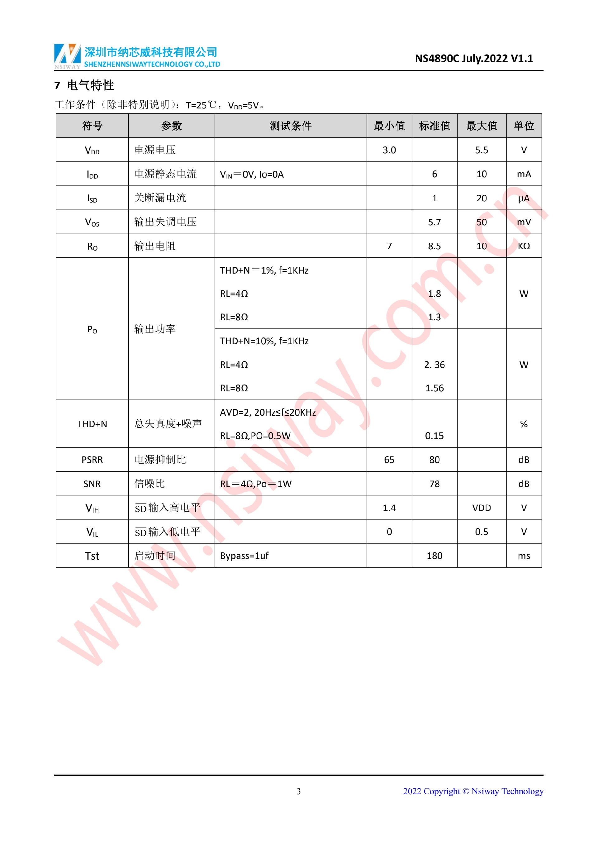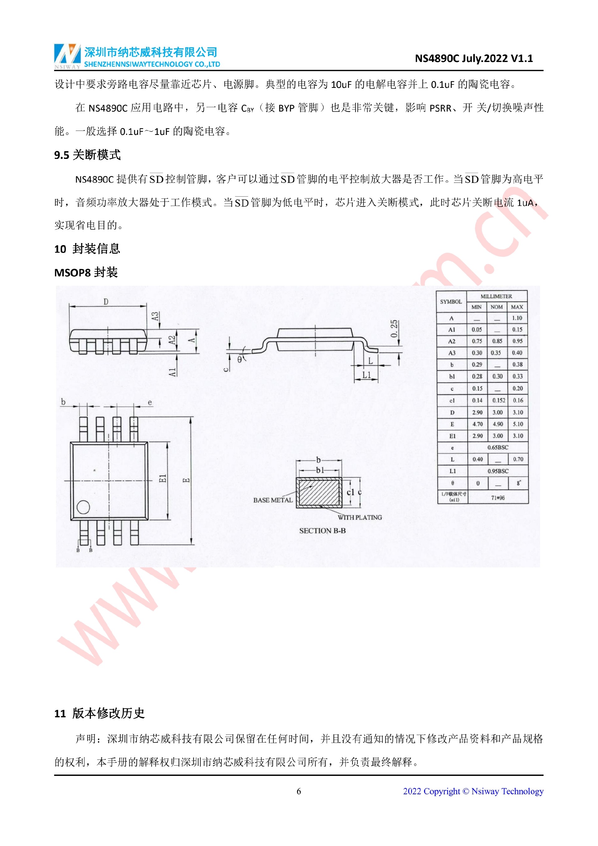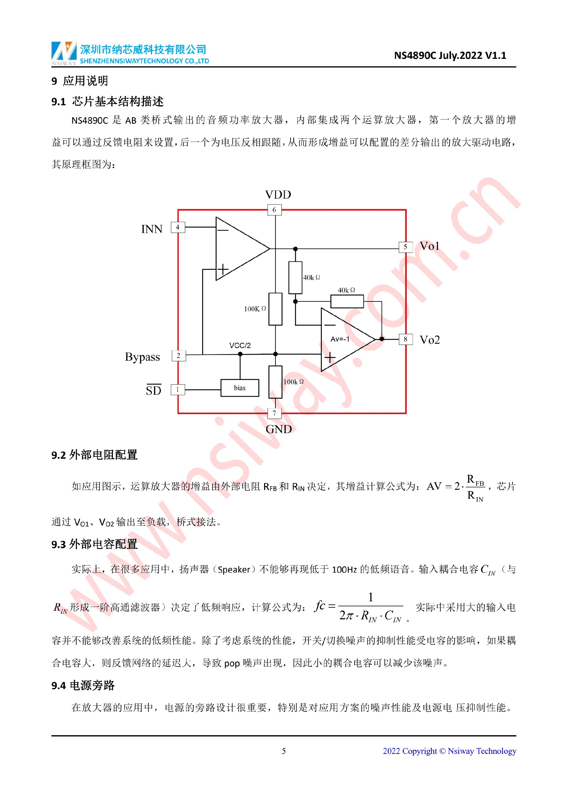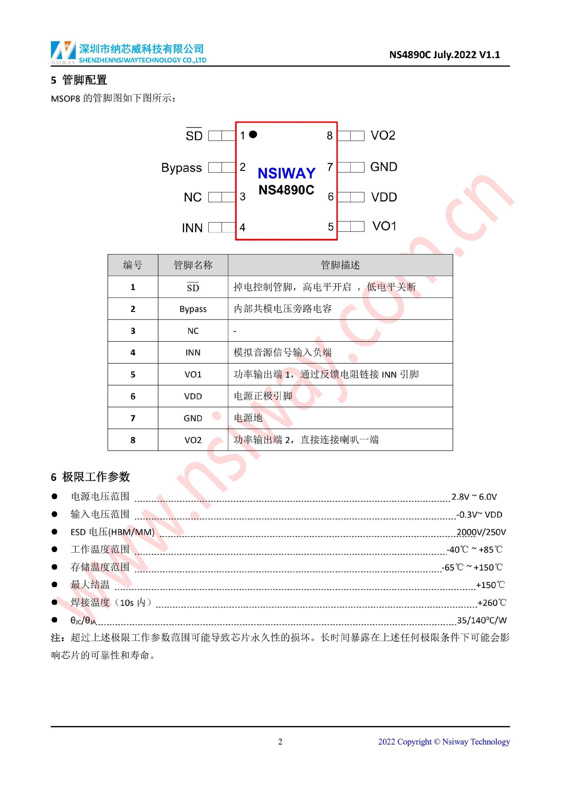 NS4890C 2.4W 單聲道 AB 類音頻功率放大器