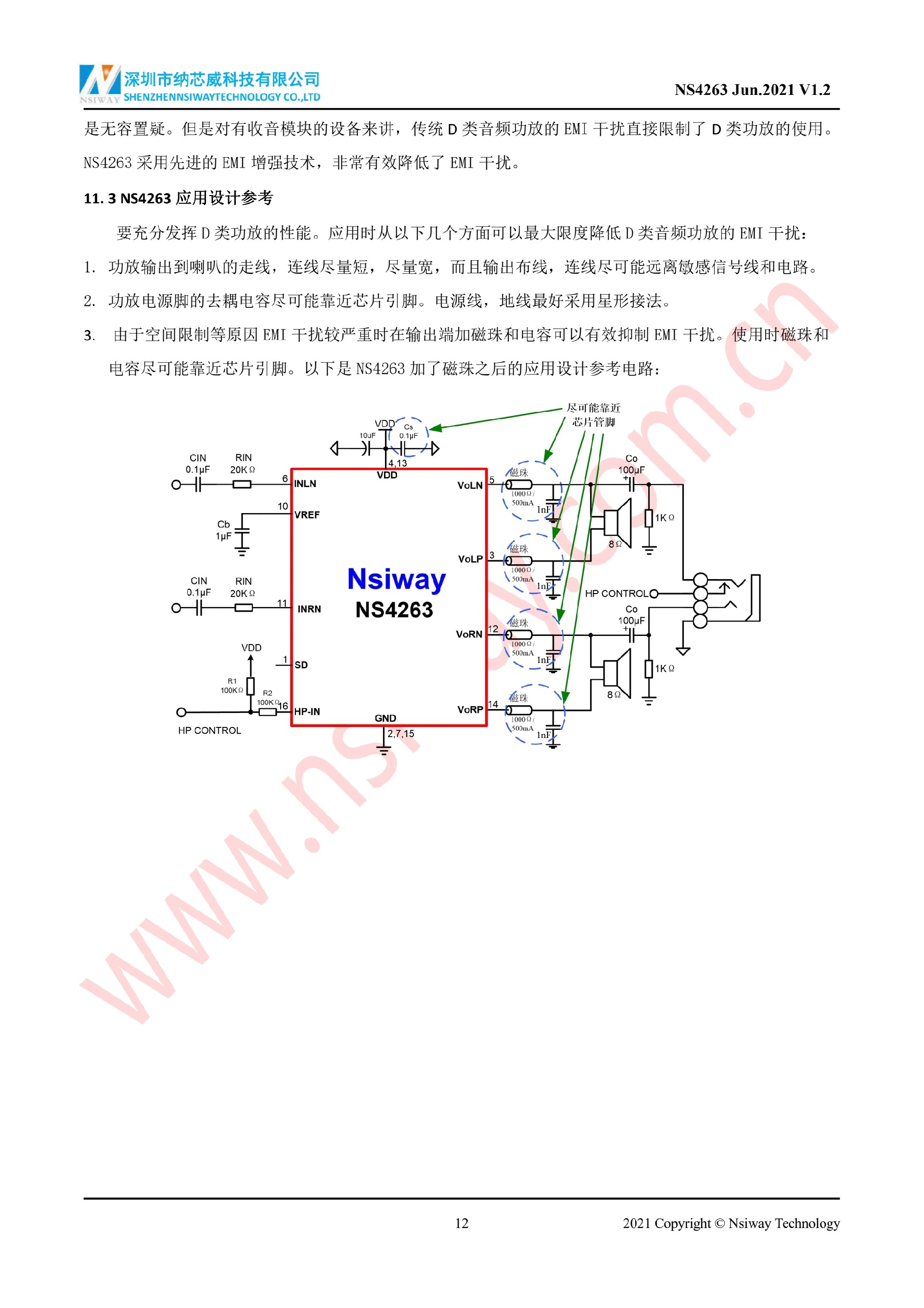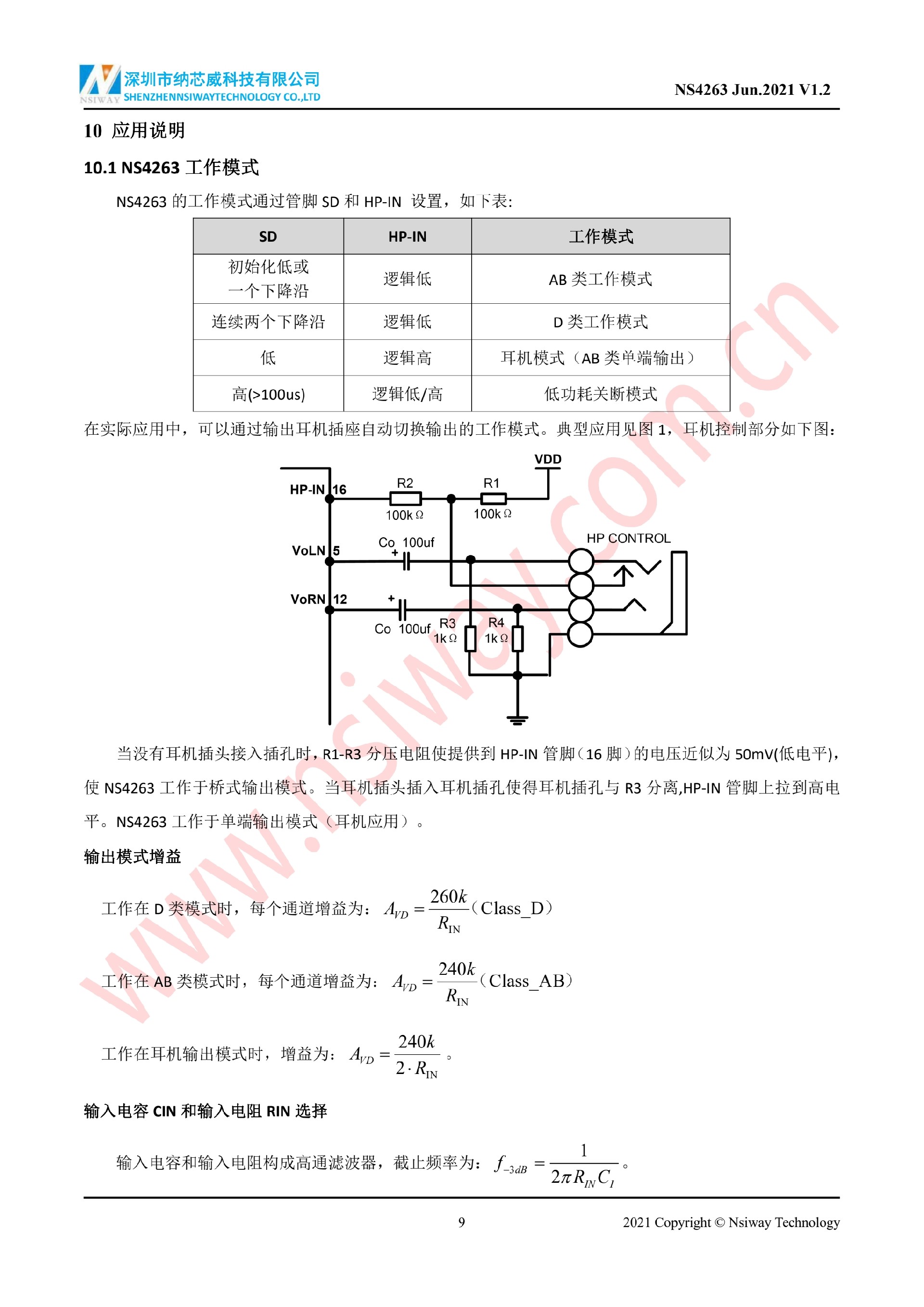 NS4263 3Wx2 雙聲道AB/D類雙模音頻功率放大器附加耳機模式(SOP-16)