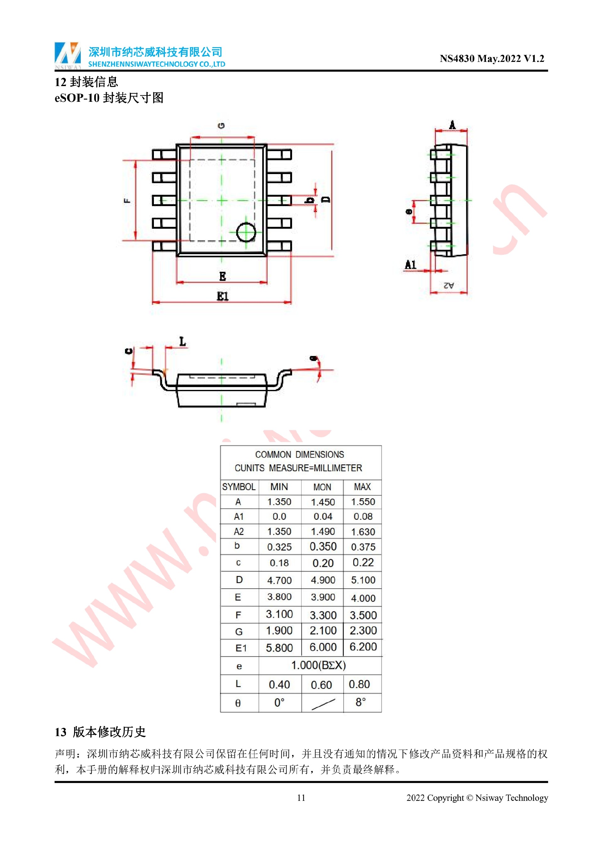 NS4830 5.3W 單聲道AB/D類音頻功率放大器附加自適應Charge Pump升壓模塊(eSOP-10)