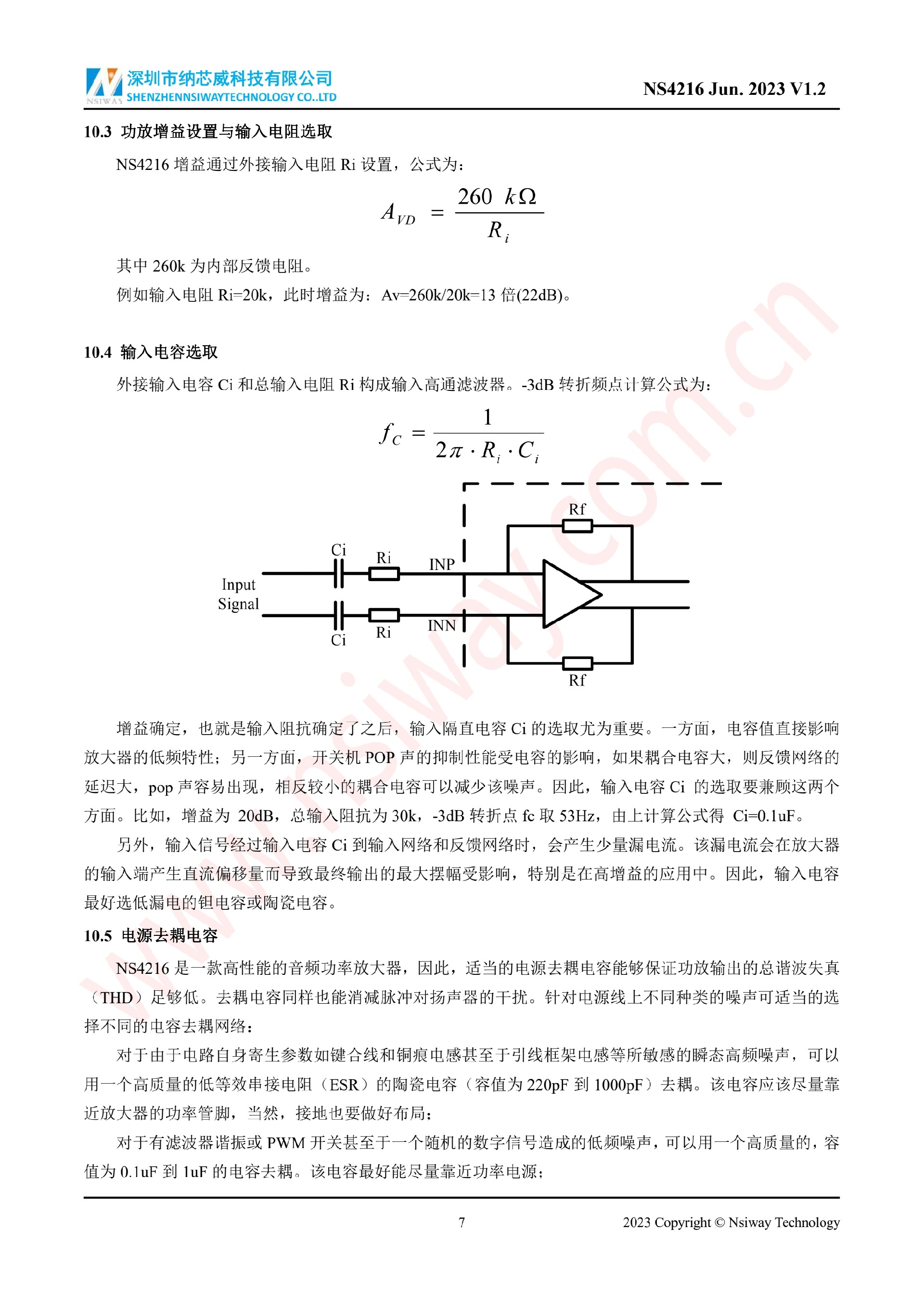 NS4216 10W×2 雙聲道 D 類音頻功率放大器
