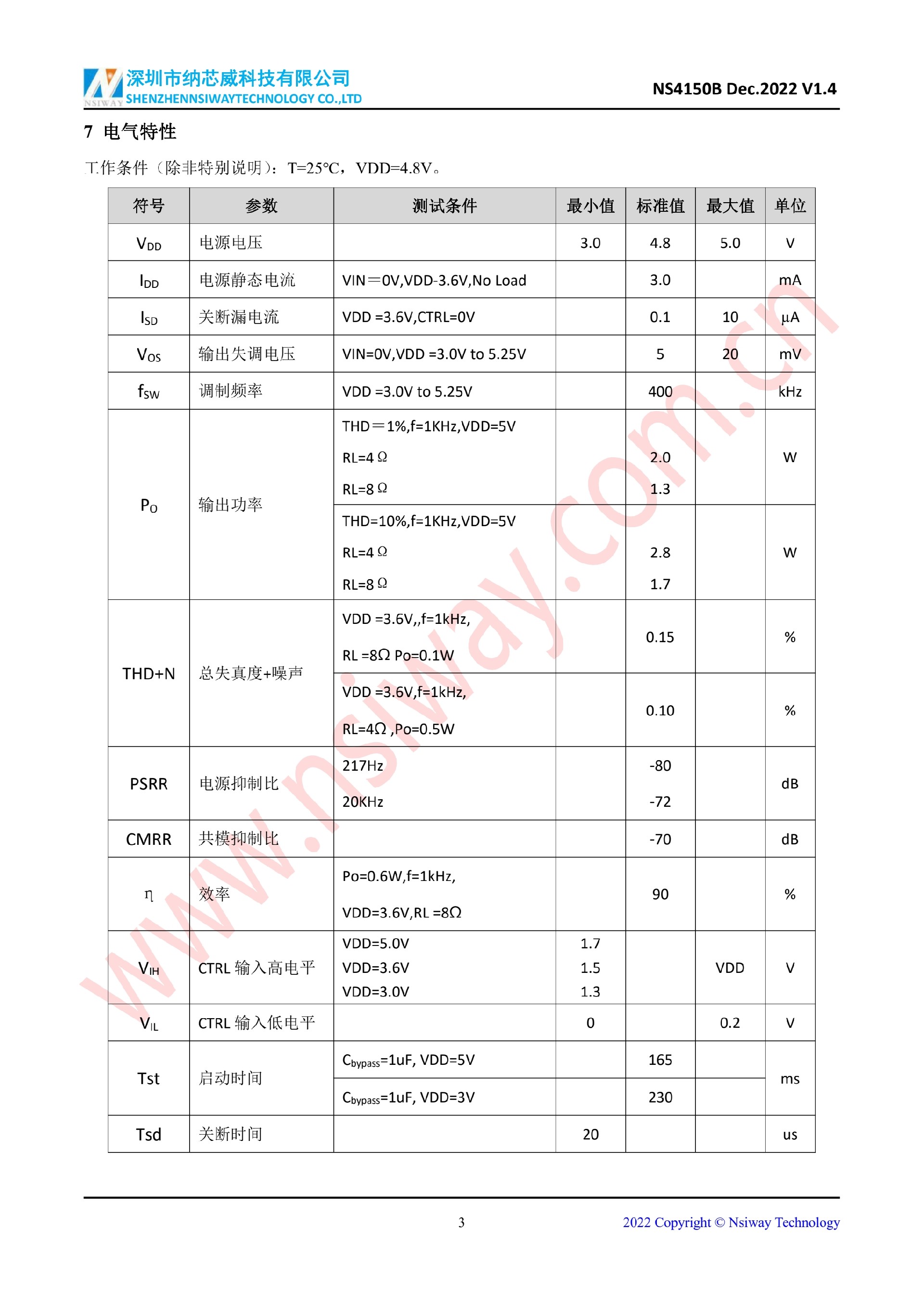 下一篇:NS4158 5W 單聲道D類音頻功率放大器附加NCN防失真功能(SOP-8)