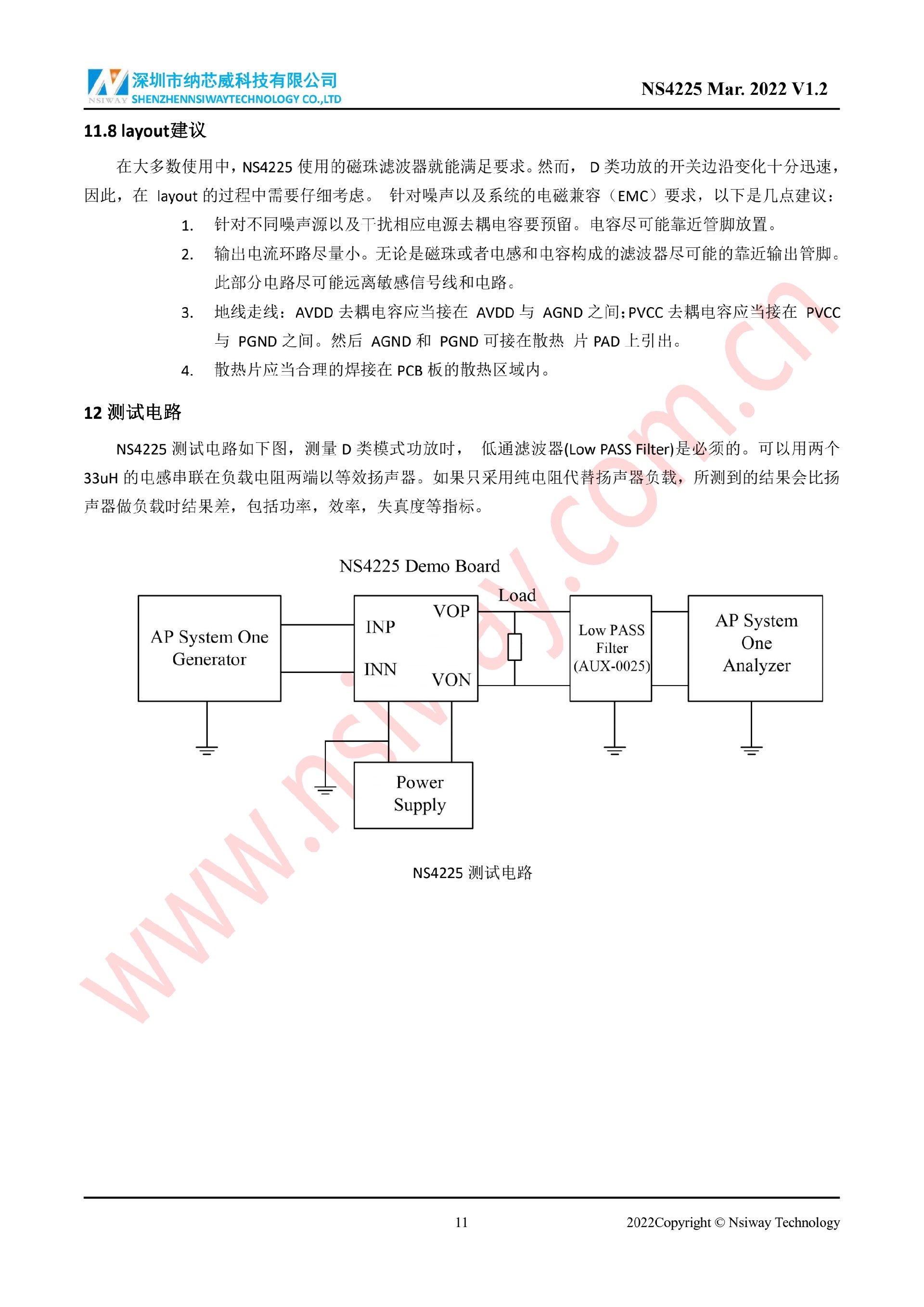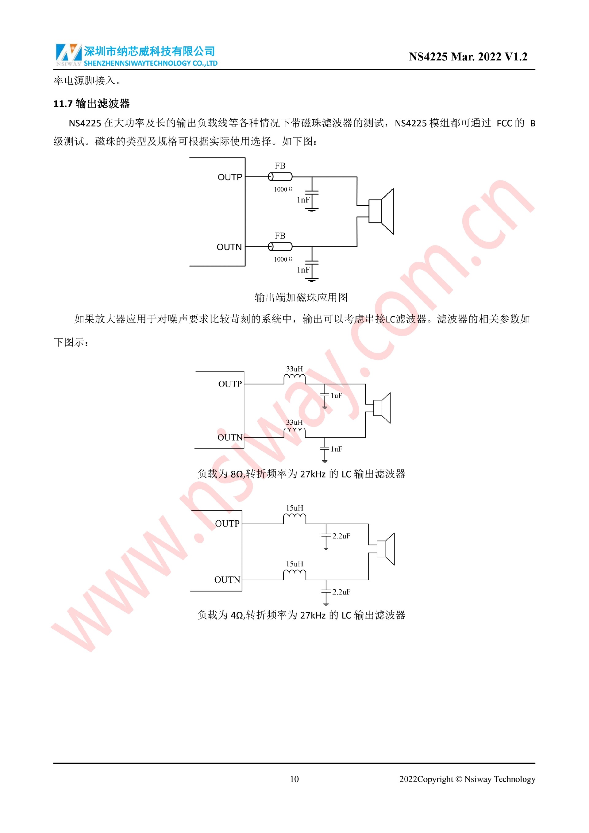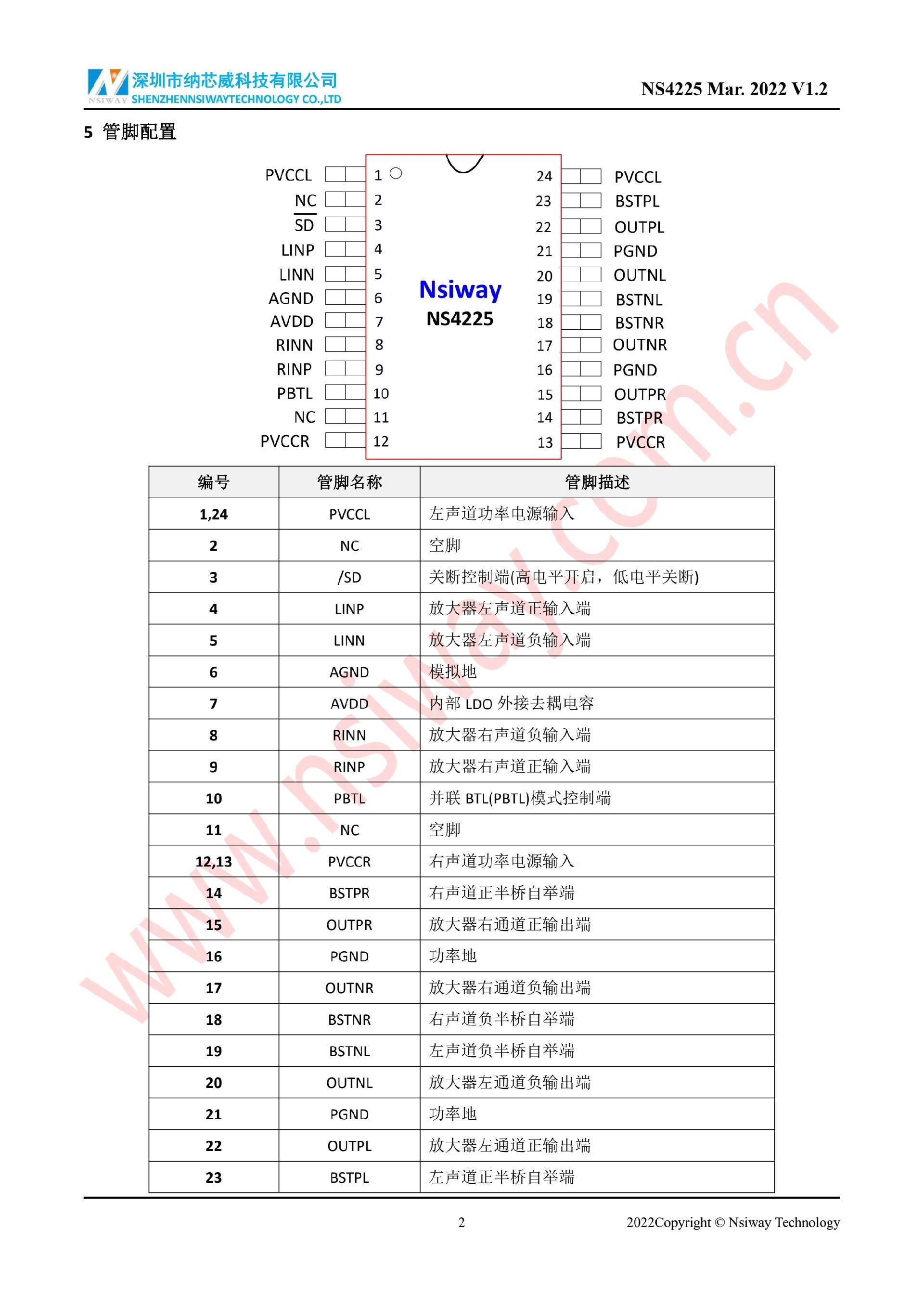 NS4225 20W×2 雙聲道 D 類音頻功率放大器附加 PBTL/BTL 功能