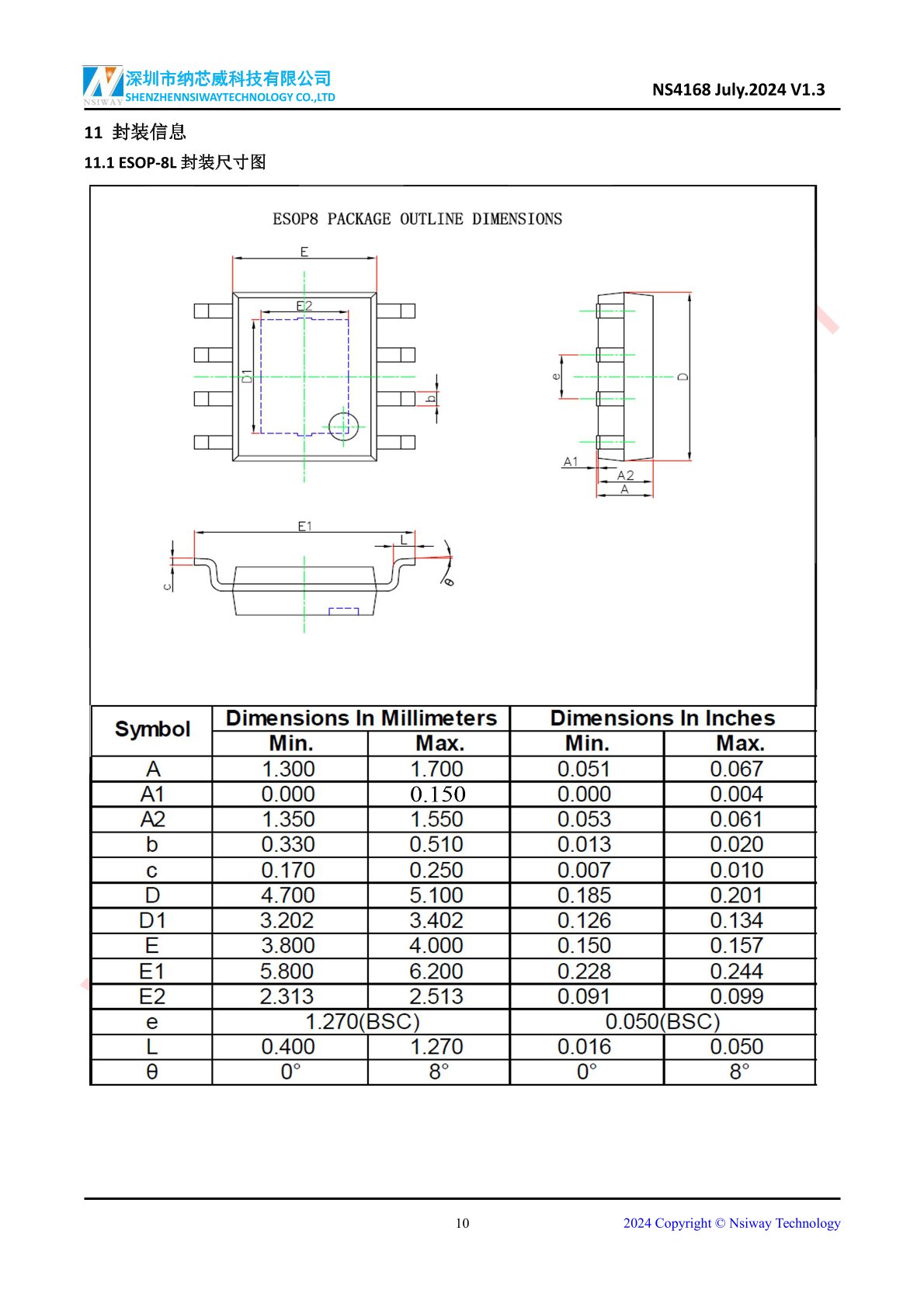 NS4168 2.5W -I2S數(shù)字輸入單聲道D類音頻功率放大器(eSOP-8)